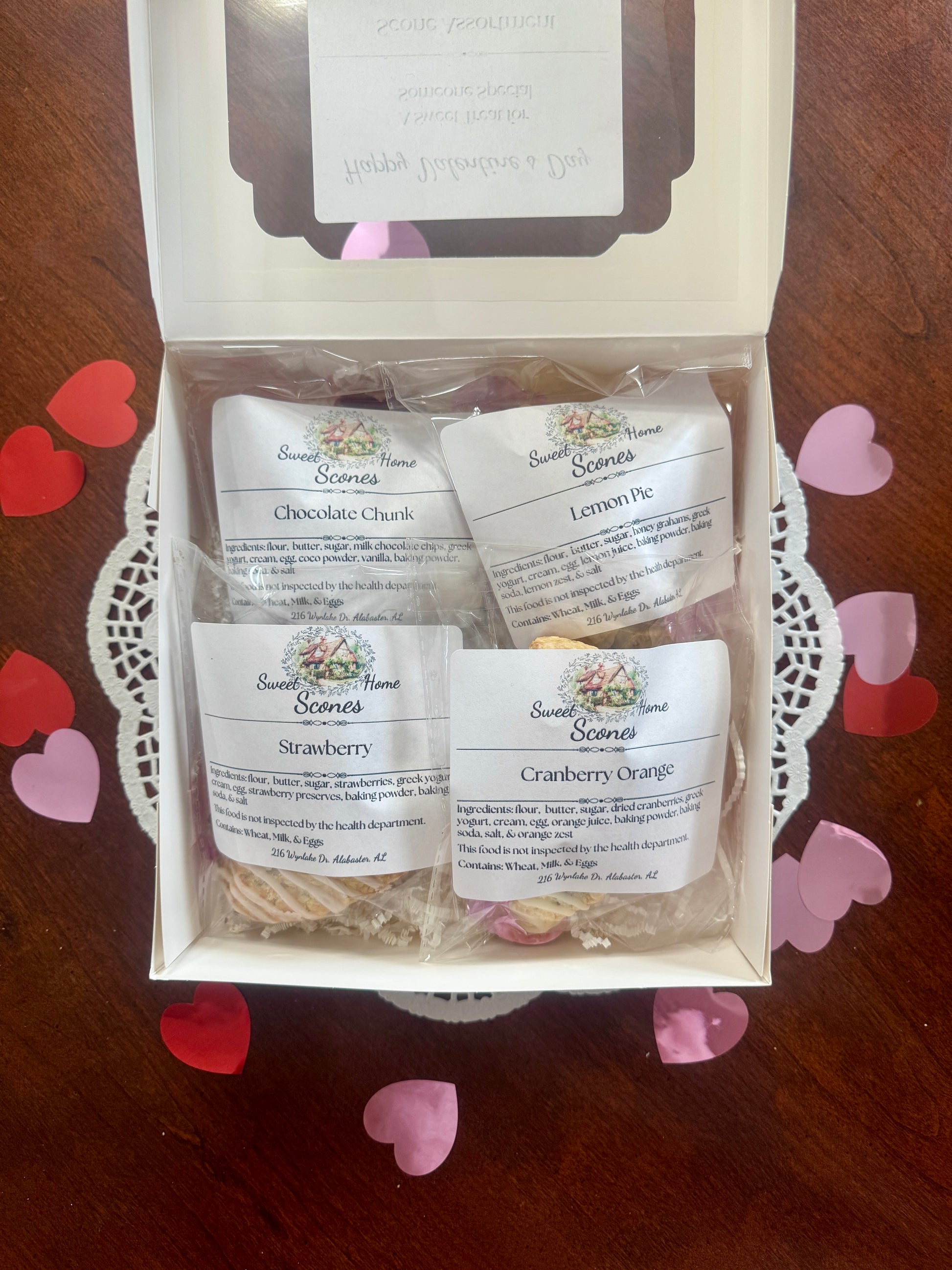 Share the love with our Valentine’s Day Gift Box, featuring four freshly baked scones hand-selected by you for the perfect mix of flavors. Each scone is made with buttery, flaky layers and baked with care to create a cozy, heartfelt treat.